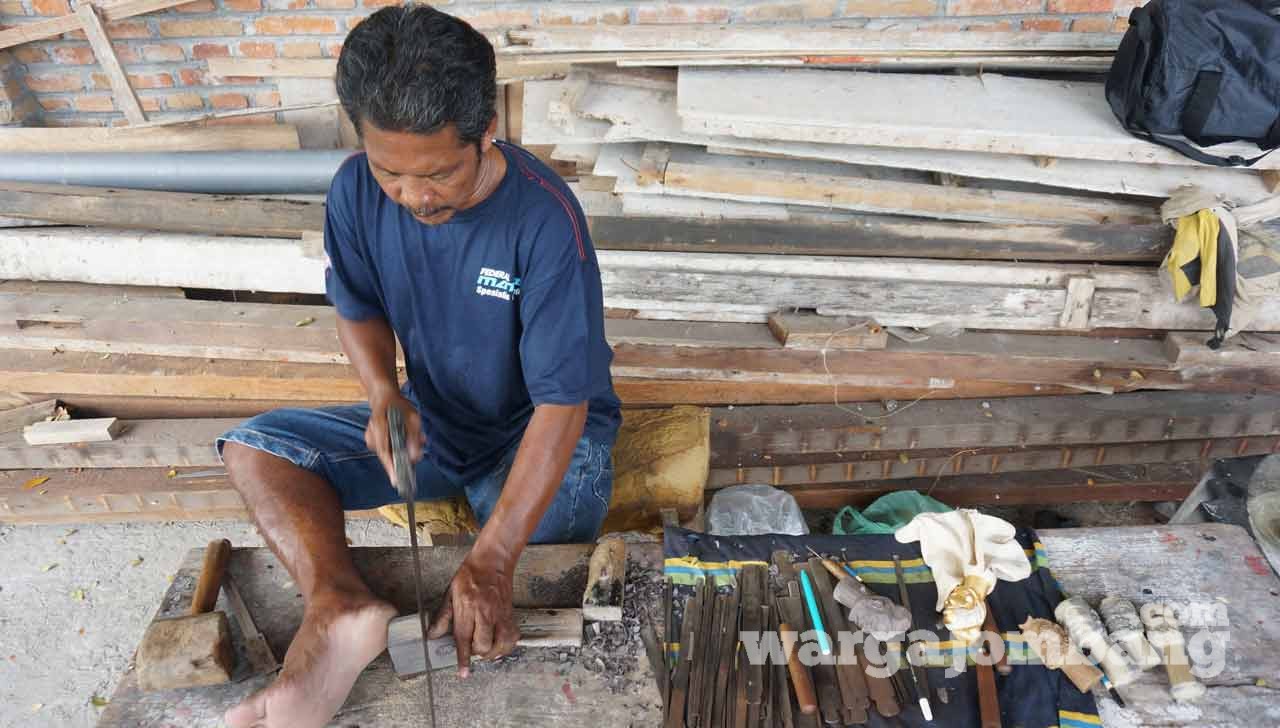 Potongan kayu tersebut lantas diukir menggunakan pahat beragam ukuran. Ukiran sendiri menyesuaikan tokoh wayang yang akan dibuat. Wayang yang sudah jadi tinggal dihaluskan dengan amplas lalu diwarnai.