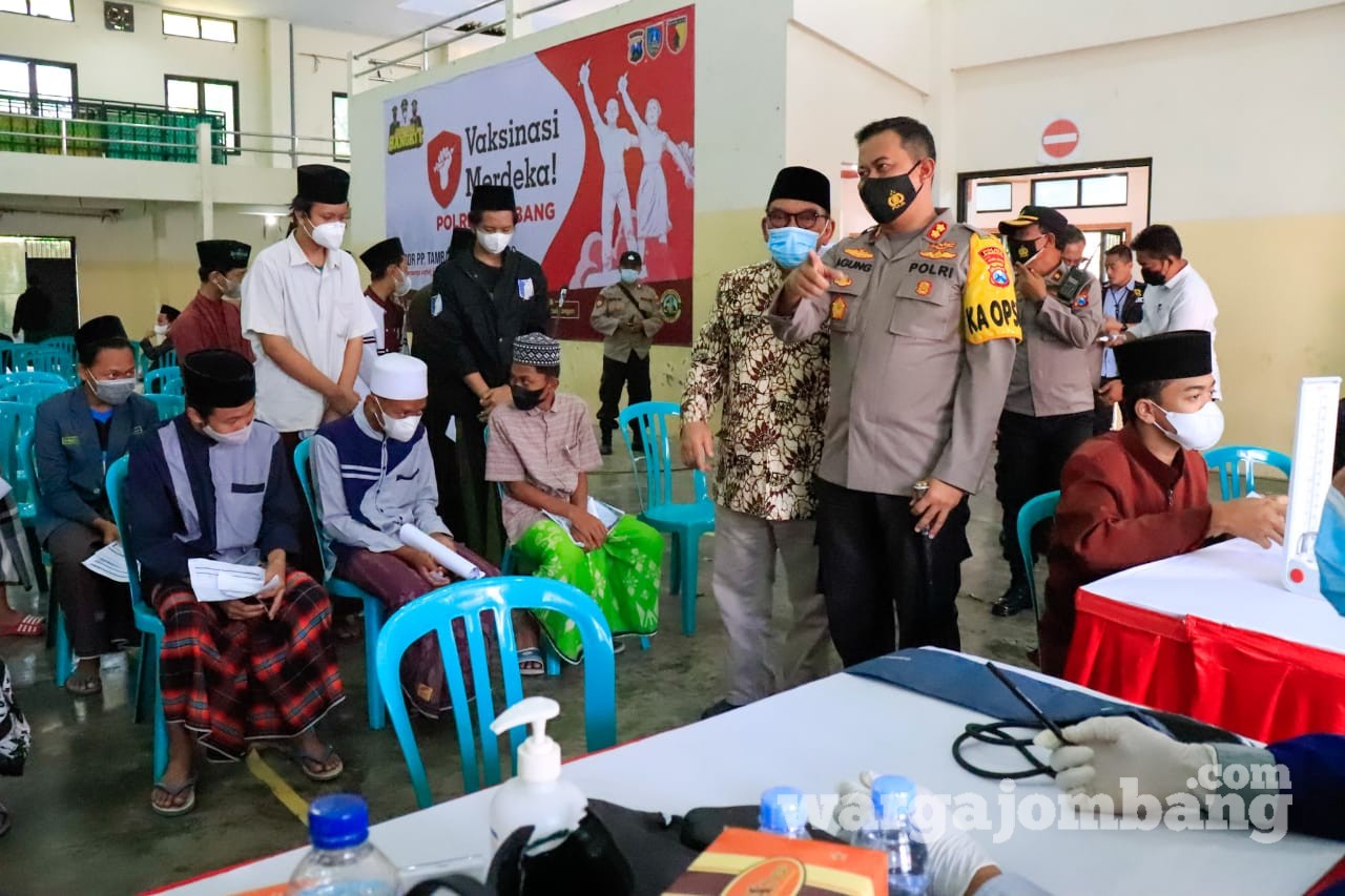 Pelaksanaan vaksinasi itu disiapkan sebanyak 500 dosis vaksin jenis Sinovac tahap pertama yang diperuntukan bagi santriwan maupun santriwati. Vaksinasi dilakukan oleh 5 Tim tenaga kesehatan dari Urkes dan Polwan Polres Jombang yang terdiri tenaga registrasi, screening dan vaksinator.