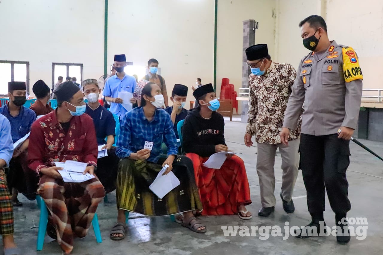 Kapolres Jombang AKBP Agung Setyo Nugroho, didampingi Pejabat Utama hadir di lokasi untuk memantau jalannya vaksinasi sekaligus mendorong serta men-support kegiatan vaksinasi yang dilakukan oleh anggotanya.