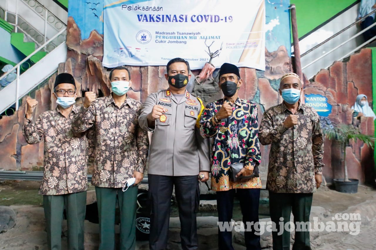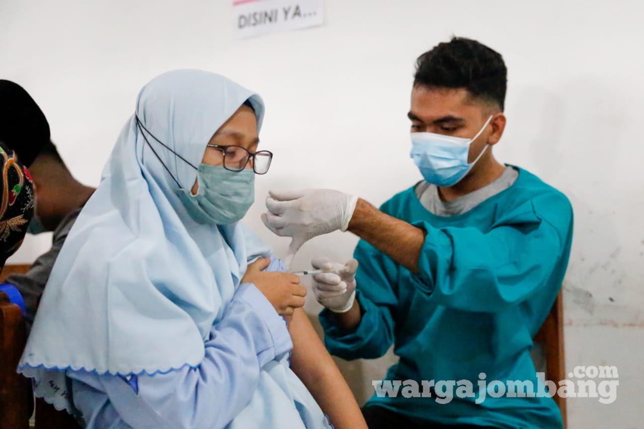 Kali ini, Polres Jombang dengan menerjunkan 4 Tim Vaksinator dari Urkes menggelar vaksinasi massal di Ponpes Walisongo, Desa Cukir, Kecamatan Diwek, Jombang, Kamis, (28/10/2021) pagi. Setelah melalui proses screening dan dinyatakan bisa mengikuti vaksinasi, tiba-tiba seorang santriwati berusia 13 tahun menangis.